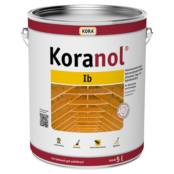 Zur Bekämpfung (Ib) und Vorbeugung (Iv) von Befall durch holzzerstörende Insekten (Hausbock, Nage- und Splintholzkäfer) in tragenden und nicht tragenden Holzbauteilen nach DIN 68800-3,4.